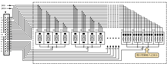 | FBs-PLC提供之FBs-32DGI指拨开关多任务输入模块,系由该模块上之I/O ASIC芯片(FBs-PLC I/O模块专用芯片)自行进行4位数× 8组指拨 开关数字(或128个独立开关状态)之多任务扫描输入,不会占用CPU之时间,且I/O ASIC之多任务扫描时间仅需10mS即可更新输入,又因采用 多任务输入方式,仅需要24条线即可完成32位数(或128点开关)之输入,加上FBs-32DGI模块仅4cm宽,真正达到超高密度,最低成本、最 省配线工时之解决方案。 |