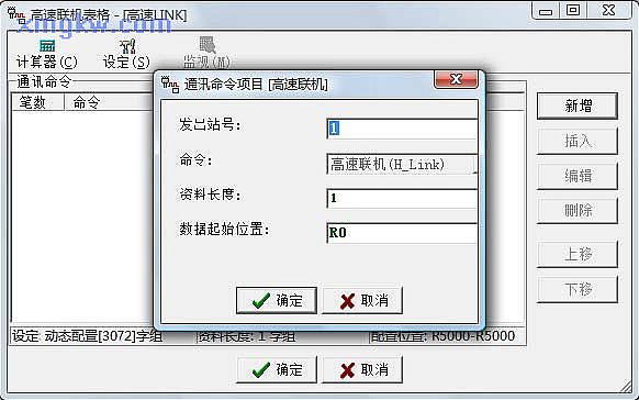 - (1)在通讯命令编辑对话框,点击 “新增”按钮,编辑一条通讯命令;