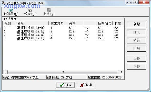 - (3)此例中共编辑了 4笔通讯命令,分别指定了每个站所支配的数据共享区域,如下图所示: