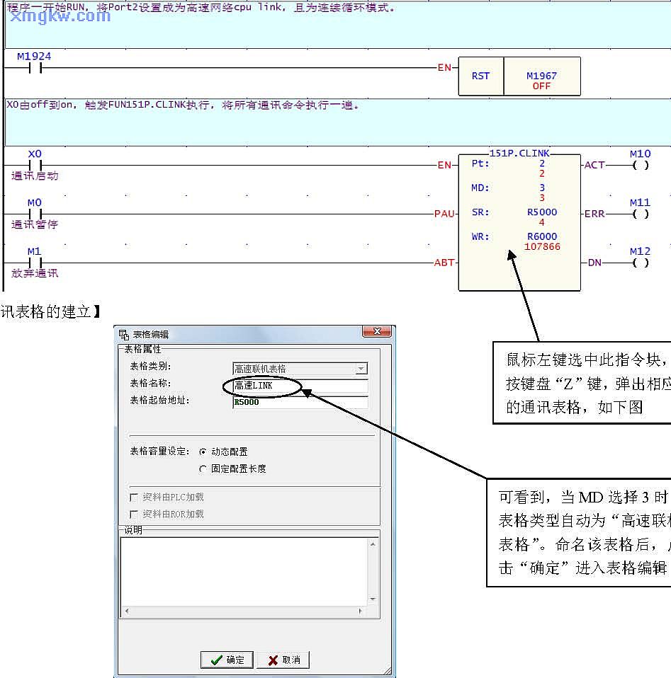 鼠标左键选中此指令块,按键盘“Z”键,弹出相应的通讯表格,如下图