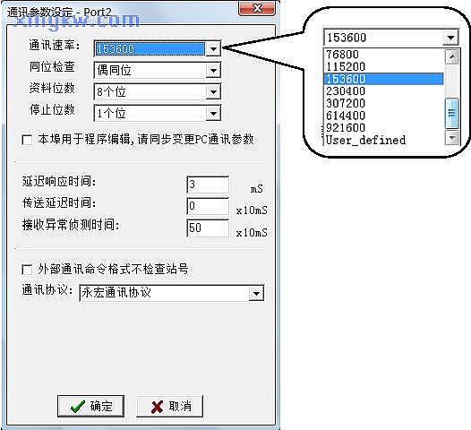 波特率: 38400~921600可调,可自定义数据位:8 停止位: 1 校验位:偶校验协议:永宏通讯协议 |