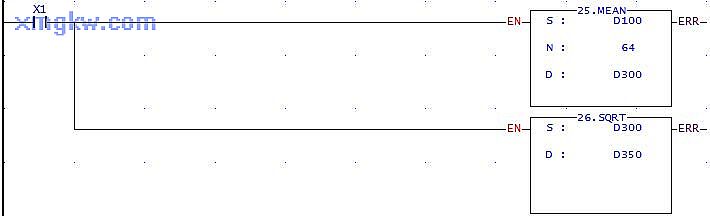 2.当 X1 =ON时,将 D100~D163等64笔历史数据平均值存于 D300,D300开平方后存于 D350 【元件说明】