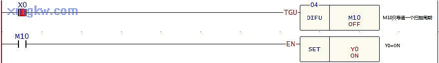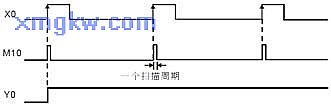 开关由 OFF→ON动作时产生一个扫描周期的脉冲 M10,作为条件去触发指示灯或其他装置。【组件说明】