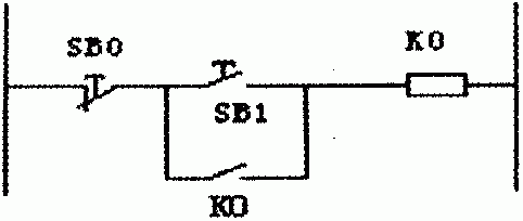 ![]() 图2 "起保停控制"电气原理图 图2为"起保停控制"电气原理图,在该系统中,按钮SB0用于停车控制,因此使用其常闭触点串联于控制线路。SBl为起动按钮,使用其常开触点。若使用相同的设备(即停车SB0用常闭触点,起动SBl用常开触点),利用PLC进行该控制,则需编程梯形图程序(图3):