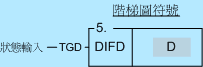 功能叙述 : ● DIFD指令系将状态输入〝TG↓〞之状态取下微分(在TG↓降缘变换时产生一波宽为扫描时间T之单击脉波)后,将此单击脉波信号存入D所指定之线圈内。 ● 本指令可以用顺序指令之TD接点直接取代,其较本指令方便好用。