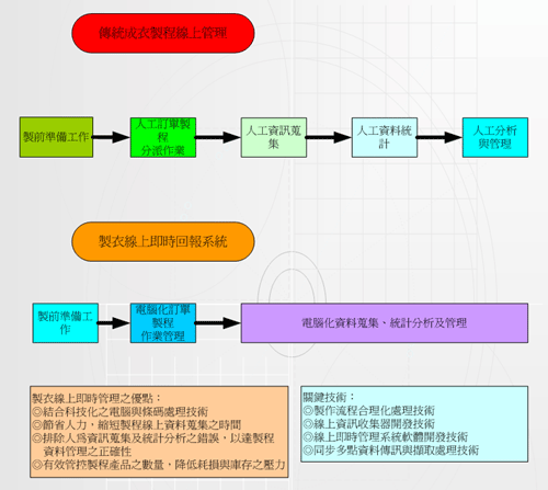 传统成衣制程线上管理与实时回报系统比较