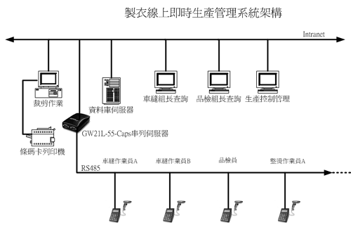 串行服务器(GW21L-55-Caps)符合CE认证可防止外部电磁波干扰,绝对适用于纺织成衣加工厂。 |