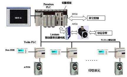 | 1. 引言 印花工序是将染料或颜料配置成色桨(染料+糊料+化学药剂),在织物上按预先设定的花样图案上染,并进行织物烘燥,使其获得各色花纹图案的过程,常用印花设备有辊筒印花机、平网印花机和圆网印花机等。 平网印花机由进布装置、对中装置、印花单元、水洗装置、导带驱动装置、机身提升装置、烘干机等组成,印花织物由进布装置粘贴在沿经向循环运行的印花导带上,经对中装置导入印花单元;印花时,导带静止,印花装置的筛网下降,刮印器刮印,刮印完毕,筛网提升,织物随导带向前移动一个花回(筛网中花纹的长度),进入下一个印花单元;印花结束后,由水洗装置清洗导带,印好的织物由导带送入烘干机烘干后,以叠布方式导出落入布车。根据工艺和用户需求,每台平网印花联合机一般配有10~16套印花单元,印花台板的长度达20m以上。 双伺服传动平网印花机通过采用两套伺服系统分别传动印花导带的前后两个传动辊,在保证工艺要求的对花精度(0.1mm)基础上,大幅度提高了导带速度(最高60m/min),从而提高了印花效率;印花单元的传动系统采用变频器控制的交流电机驱动,经减速后驱动刮印器往复运动,其刮印速度、往返次数、以及刮印距离等均可调节,以满足工艺要求;同时,印花单元相对于导带的间歇运动,需要及时完成筛网下降、刮印、筛网上升动作,以最大地提高印花速度;此外,贴布辊和烘房导带为连续工作方式,相对于间歇运动的印花导带,三者之间必须保持同步。 2. 控制系统方案 ![]() 双伺服传动平网印花机控制系统采用施耐德电气公司的中型PLC-Premium为控制核心,通过TSXCAY22伺服控制模板控制Lexium伺服系统(驱动器和交流伺服电机)实现印花导带前后两个传动辊的同步运行和定位控制;通过模拟量输出信号控制Twin Line伺服系统实现对中装置的精密控制;每套印花单元采用Twido系列PLC、ATV31系列变频器以及TSX08 HMI文本图形显示器控制,Twido PLC与Premium PLC通过Modbus总线连接,整个系统采用10.4” Magelis XBT-G 彩色TFT触摸屏(XBT G5330)进行参数设定、显示等操作和系统监控。 3. 控制系统说明 Lexium伺服系统是施耐德电气公司推出的全数字伺服环控制解决方案,驱动器功率范围为1.5 ~75A,内置EMC滤波器和制动电阻,具有高闭环响应特性(转矩控制: 62.5us、速度/位置位置控制: 250us),允许208 ~480VAC宽电压输入,同时具有Unilink Commissioning 软件自动配置闭环参数和负载示波器仿真等功能;伺服电机为高转矩、高惯量交流无刷电机,转矩范围:0.4~100Nm,具有IP65/67防护等级,内置解码器(可选SERCOS码盘),可选制动器。 TSX CAY 22 是Premium PLC 2个独立轴(无限轴)位置控制伺服模板,是为满足机器制造中对兼具高性能运动控制和顺序控制要求而设计的,内置主/从功能、自动纠偏(Auto Offset) 、集成闭环控制器(阻止停车过位)等功能,反馈信号为250 kHz 增量式码盘/1M Hz 绝对式码盘(SSI 协议)。通过PL7 Pro编程软件中的特定配置和调试窗口以及SMOVE运动控制命令,可以方便地实现预定的运动控制功能。 4. 同步控制方案 同步控制原理如下图所示: ![]() 5. Lexium伺服系统与Twin Line伺服系统的定位 ![]() |