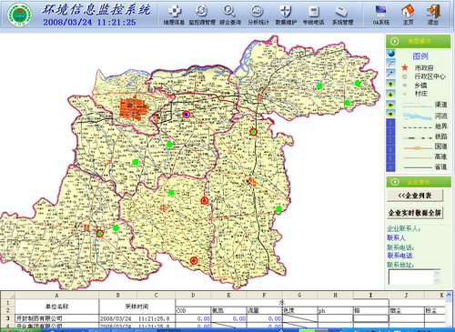 环境保护是我国的一项基本国策。随着我国环境保护事业的发展,环境管理工作不断深化,信息化已成为提高环境管理与决策水平的重要技术基础。“九五”期间,国家环境保护总局明确提出了我国环境信息化建设的奋斗目标,将环境信息化建设作为环境管理能力建设的一项重要工作,积极推进环境信息化建设的发展。 随着信息技术、网络技术的飞速发展,我国环境信息化建设工作也得到了较快发展,以国家级环境信息网络系统为中枢、省级环境信息网络系统为骨干、城市级环境信息网络系统为基础、县级环境信息网络系统为补充的四级全国环境信息网络系统已初具规模。环境信息网络系统建设、环境管理办公自动化应用、环境管理数据库系统开发、地理信息系统应用、环境信息共享和发布,以及Internet/Intranet等一系列信息技术、网络技术的开发与应用,都取得了很大进展,并在环境管理工作中得到了广泛应用,为环境管理和决策提供了良好的技术服务与支持。 力控软件在污染源在线监控(监测)系统中应用广泛,本文章中只是介绍了其中一个案例,为了更方便软件在污染源在线监控(监测)行业中的使用,力控提供了污染源在线监控(监测)系统的行业版,针对这一行业的特点,下面列出该行业版中所支持的测控设备的厂家列表: 1、广州市怡文科技 2、中国环境监测总站 3、山东省青岛金仕达电子科技有限公司 4、山东省青岛竞业高新技术发展有限公司 5、德国WTW公司 6、厦门隆力德机电设备有限公司 7、青岛崂山电子仪器总厂 8、北京蓝星环保技术有限公司 9、北京蓬甲科技发展公司 10、长沙高新技术产业开发区绿色科学研究所 11、欧美大地仪器设备中国有限公司 12、意大利哈纳仪器中国总代理 13、北京哈纳科仪科技有限公司 14、厦门艾士维环保设备有限公司 15、江苏电分析仪器 16、日丰柴田科学器械工业株式会社北京事务所 17、赛普环保科技术发展有限公司(天津) 18、北京北美仪器公司 19、北京北分麦哈克分析仪器有限公司 20、香港昌信科学仪器公司上海维修站 21、日本岛津制作所 22、北京华厦科创仪器技术公司 23、北京金信诚有限责任公司 24、吉林市北光分析仪器厂 25、吉林市北方电光应用技术研究所 26、中西公司(北京) 27、北京普莱而得机电技术有限公司 28、吉林市科技开发实业公司 29、吉林省长春吉大小天鹅仪器有限公司 30、河北先河科技发展有限公司 31、青岛崂山电子仪器总厂有限公司 32、北京圣地万隆测控技术有限公司 33、广东省佛山分析仪器厂 34、北京普析通用仪器有限公司 35、英国KANE中国公司北京承天科技公司 36、北京德隆博宇科贸有限公司 37、河北先河科技发展有限公司 38、浙江省杭州恒达工业自动化研究所 39、佛山分析仪器厂 40、上海宏伟环保设备仪表厂 41、天津市河东区环保局 42、天津市华津环保技术发展公司 43、山东省青岛竞业高新技术发展有限公司 44、大连中环仪器仪表有限公司 45、太原中绿环保技术有限公司 46、江苏电分析仪器厂 47、北京市劳动保护科学研究所 48、中国环保监测总站河北省承德市华通环保仪器厂 49、美国帕金尔默公司宏超高科北京分公司 50、欧陆科仪(远东) 51、承德华通环保仪器厂 52、烟台海阳国环测控仪器有限公司 53、江苏环发环保科技推广中心 54、广东省华南环境科学研究所 55、山东省恒大环保股份有限公司 56、山东省恒大环保 57、北京北美仪器公司 58、宏超高科北京分公司 下面以开封市环保局环境在线监测系统为例,详细说明力控软件在污染源在线监测系统中的应用。 1.项目概述 开封市环保局环境在线监测系统是由污染源在线监测系统、主要水域水质自动监测系统、城市空气质量监测系统、城市噪音监测系统、和监测中心组成的监测系统。该系统可进行自动采样、对主要污染因子进行在线监测;掌握城市污染源排放情况及污染排放总量,监测数据自动传输到环保监测中心;由监测中心的服务器进行数据汇总、整理和综合分析;监测信息传至环保局,由环保局对污染源进行监督管理。 1)整合GPRS/CDMA/宽带通讯技术,实时监视重点污染源瞬时流量、累积流量、污染物浓度、污染物排放总量等数据,实时控制现场设备的运行状态;整合GPRS/CDMA/宽带通讯技术,传输全市大气和水自动监测数据到环保局中心控制室。 2)实现各类监测数据的接收、显示、统计、自动综合分析、存储、应用、发布等。 3)利用GIS与数据库的接口功能,在电子地图上直观地生成可视化的计算结果图表。