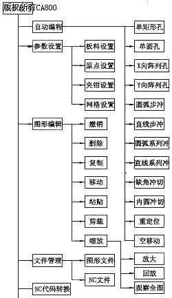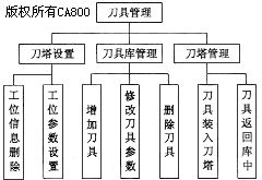 图2 监控和编程系统数据流图 监控和编程系统的总体结构分为三部分:监控子系统、编程子系统和刀具管理子系统,其中编程子系统包括图形编程和手工编程两部分。手工编程只需调用Windows中已有的编辑器如Notepad即可实现。监控和编程系统的结构如图3所示。监控、编程和刀具管理三个子系统分别完成系统的一部分功能,相对独立,不同子系统在数据结构、控制算法和控制模式等方面具有不同的性质和特点,同时,整个系统又是各子系统的有机组合,有着密切的联系,因而各子系统之间必须存在着信息交换和协调问题。在进行系统的研究和设计时,应尽量减少各部分之间的耦合,以利于各子系统功能的实现;同时应保持各系统之间清晰的信息接口,以增强系统的重构和扩展能力。图形编程系统菜单结构见图4,刀具管理系统的总体结构见图5。