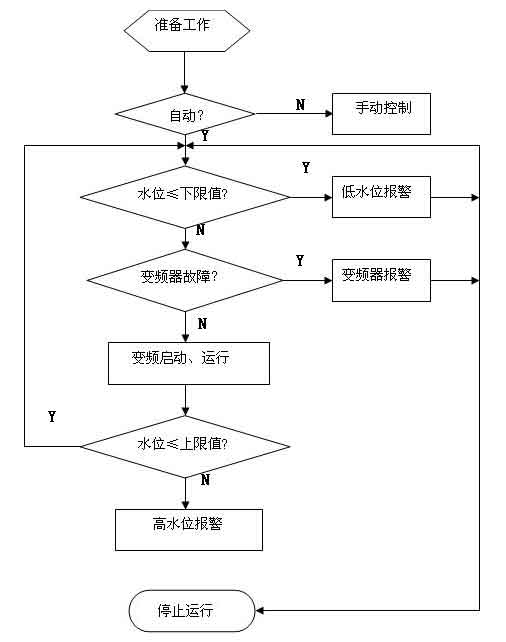 | 26K字节程序和数据存储空间。6个独立的30kHz高速计数器,2路独立的20kHz高速脉冲输出,具有PID控制器。2个RS485通讯/编程口,具有PPI通讯协议、MPI通讯协议和自由方式通讯能力。I/O端子排可很容易地整体拆卸。用于较高要求的控制系统,具有更多的输入/输出点,更强的模块扩展能力,更快的运行速度和功能更强的内部集成特殊功能。 根据上述分析,参照西门子S7-200产品目录,选用主机为CPU226 PLC一台、另加上一台模拟量扩展模块EM235。 (2)变频器模块的选型: 目前,市场上存在各种各样的变频器,本设计采用ABB公司的ABB ACS800变频器。ACS800系列传动产品最大的优点就是在全功率范围内统一使用了相同的控制技术,例如启动向导,自定义编程,DTC控制,通用备件,通用的接口技术,以及用于选型、调试和维护的通用软件工具。内含启动引导程序,令您调试易如反掌;自定义编程:内置可编程模块,犹如PLC令您发挥自如;体积小巧:内置滤波器,斩波器及电抗器、性能卓越。 4 系统的控制流程: (1)程序设计前准备工作:了解系统概况,形成整体概念,熟悉被控对象、编制出高质量的程序,充分利用手头的硬件和软件工具。 (2)程序框图设计:这步的主要工作是根据软件设计规格书的总体要求和控制系统具体要求,确定应用程序的基本结构、按程序设计标准绘制出程序结构框图,然后在根据工艺要求,绘制出各功能单元的详细功能框图。 (3)编写程序:编写程序就是根据设计出的框图逐条地编写控制程序,这是整个程序设计工作的核心部分。 (4)程序测试和调试:程序测试和调试不同,软件测试的目的是尽可能多地发现软件中的错误,软件调试的任务是进一步诊断和改正软件中的错误。 (5)编写程序说明书:程序说明书是对程序的综合说明,是整个程序设计工作的总结。 下面是系统设计流程图: |