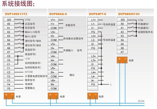 | 一般情况下,通过ClO2与水的反应达到净水的目的,但如果ClO2过多则会形成二次污染,中达电通的净水方案采用台达PLC进行系统自动控制,代替以前用单片机系统,增加了可靠性,功能性,达到了很好的效果。 关键词:净水设备、可编程控制器(PLC)、人机界面 引言: 工业对发展中国家的经济的发展起到了不可磨灭的作用,特别是中国的今天,工业的发展带动了相关产业的高速发展,成为国民经济重要的支柱之一。但是经过工业迅猛发展的国家都明白,工业的发展也意味着自然环境的破坏,特别是对水源的严重污染,所以对水源的保护,污水的治理,水的净化就显得十分的重要。随着人们生活质量的不断提高,特别是医院、化工实验室等单位,对水的品质也提出了更高的要求,所以根据现状的需要,对更好的净化水的设备也提出了相应的需求。而此促进了净化设备公司的飞快成长,也对控制部分要求更稳定,更可靠!像目前一些净化水设备厂商加大资金与技术的投入,用PLC代替以前的单片机控制系统。 设备控制背景: 系统构成:电源模组+以8051单片机为主,加扩展A/D及I/O芯片搭建的PCB控制板; 系统分析:系统采用单片机实现自动控制系统,由于电路的整体设计不能够很合理,尖峰等保护措施不好,很容量出现电路故障。这也增加了服务,也隐形的增加了产品的成本,影响公司市场的发展,所以用户很想用更可靠的系统来代替原有的系统,以减少服务量,减少综合成本。 原理说明: 化学反应在专门的反应箱里,通过PLC控制两路加热信号并及时的采集PT100温度信号,使反应箱始终保持在设定的温度,再通过PLC发出脉冲对计量泵进行控制加入ClO2药剂量,使适当浓度的ClO2与水的发生化学反应,达到消毒的目的。