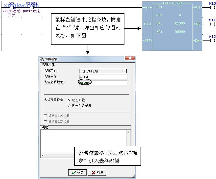- (2)从上图状态栏可看出,编辑此 8条通讯命令共占用了 57个缓存器R5000~R5056;