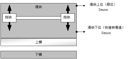 在定长模式下应设定定长位置,注意:请勿将定长位置设为零或负值。踩脚踏开关下,程序运行,后挡料开始移动到设定位置,然后滑块开始做折弯动作,在滑块运动到下位Sensor之前,滑块以快速下降,到达下位Sensor后转为慢速。此时,上压时间和辅退时间开始计时。到达辅退时间时,后挡料开始进行辅退,辅退距离可通过参数设定画面设定。当上压时间计时完毕后,系统由上压转为卸荷,此时卸荷时间开始计时,完成卸荷动作后,系统会自动将上模抬起,此时可以松开叫踏开关。滑块运动到最高点后,后挡料开始重新定位,并开始计算上停时间,等到上停时间计时完毕后,滑块才可以向下运动,继续进行折弯工作。