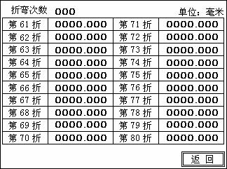 首先要设置折弯次数,然后通过光标键将光标移动到每一折后挡料位置的地方进行设定。同样需要注意,设定的位置值不能为零或为负数,以免发生错误的动作。在设定全部数据后。按返回功能键,返回到单次画面。此时变成功能键提示信息呈现为反白状态,表明已经处于变成模式,此时可通过踩脚踏开关下来运行程序,执行过程及操作同定长模式,同样有单次模式和连续模式。整个执行过程如下:后挡料定位到第一折位置→滑块快下→慢下→辅退→上压→卸荷→回原位→上停→后挡料定位到下一折的位置→……。当执行完所设的折弯次数后,后挡料重新定位到第一折的位置,继续折弯。折弯次数最多可设定为100折,可通过Page Up/Page Down按键进行翻页。