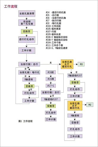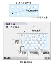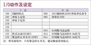 冲孔动作分析:当轴向移动到定点时,会先确认冲床是否在上位,如果在上位,送出冲孔命令,再等待冲床下定位回授信号,才把冲孔命令取消。再等待冲床上定位命令进来,轴向再继续移动。