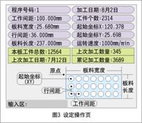 设定操作页:【板宽】、【板长】、【起始坐标】、【工作间距】、【行间距】、【行偏移量】