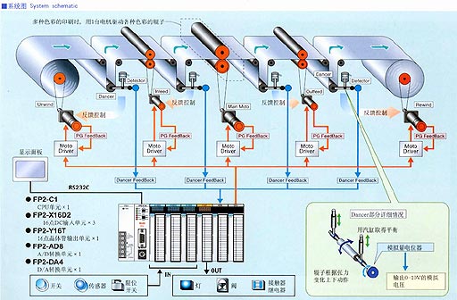 使用松下电工FP2系列PLC对印刷机械进行PID控制及实现张力控制,如系统结构图 javascript:if(this.width>580)this.width=580"> | |