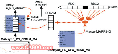其中CANsync_PD_COMM_MA以及CANsync_PD_CFG_MA皆为主站配置中所用的模块, CANsync_PD_COMM_SL以及CANsync_PD_CFG_SL皆为从站配置中所用的模块。通过初始化主站中的配置, 以及从站的初始化配置, 可将具体的待设定值实时传给从站。从站的数据也可根据需要传回主站, 如图5所示。