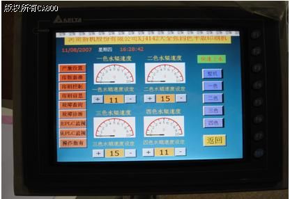 工艺参数人机界面设定;人机部分主要实现人参与控制系统的途径。它主要包括:显示部分、设定部分、操作部分、历史故障部分;其中设定主要是主机速度设定、四色机组水量设定、四色机组印版套准定位。