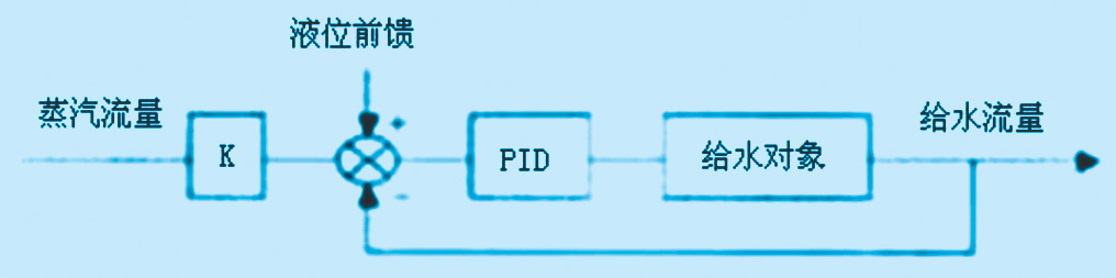 | ,流程简单,产汽量也较稳定,我们从操作人员的操作中得到启发,认为减少给水量的波动从而稳定给水温度成为该废热锅炉液位控制的要点。因此我们选用“以汽定水+液位前馈”比值控制方案,方案框图如图3所示。  图3 汽定水+液位前馈比值控制方案框图