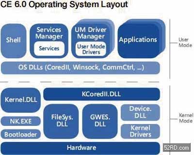 微软在操作系统领域共有3大分支,其中之一是已经成为历史的DOS/Win9X,而另一分支则是正在桌面环境上发光发热的NT架构,最新一代产品为Vista,而CE这一分支算是微软针对个人计算机以外的产品所开发的操作系统家族统称,使用在PDA或智能型手机上的就称为Windows Mobile,要使用这个名称必需要通过微软认证,而应用在其它用途,如机上盒、VoIP电话、收银机等则维持Windows CE的名称,不需通过认证,但是在授权费用方面则是有所不同。基本上,不同名称只是在于启用元件的不同而已,基本核心都完全一样。而我们将在这篇所讨论的,就是基于CE架构之下的行动装置操作系统架构。