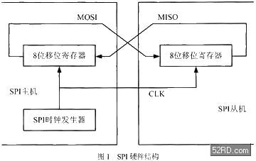 | 在嵌入式系统处理器中有相当一部分处理器不带SPI接口,但基丁SPI接口的设备非常丰富,此外,SPI设备的不同以及处理器对GPIO口位寻址是否支持各处理器各有不同,因而不同处理器中软件模拟GPIO也各不相同。若能提供一种通用可配置可移植的GPIO模拟SPI总线的驱动则能很方便快捷的访问SPI设备,从而提高整个嵌入式系统的开发效率。本文针对GPIO口位寻址与否给出方面,给出了一种可配置GPIO模拟SPI总线的方法并详细介绍了其设计与实现过程,且具有代码小可移植性强使用方便等特点。 1 GPIO规范 SPI是一个全双工的串行接口。它设计成可以在一个给定总线上处理多个互联的主机和从机。在一定数据传输过程中,接口上只能有一个丰机和一个从机能够通信。在一次数据传输中,主机总是向从机发送一个字节数据,而从机也总是向主要发送一个字节数据。可以使MCU与各种外围设备以串行方式进行通信以交换信息。由于SPI总线一共只需3~4位数据线和控制线即可实现与具有SPI总线接口功能的各种I/O器件进行接口,而扩展并行总线则需要8根数据线、8~16位地址线、2~3位控制线,冈此,采用SPI总线接口可以简化电路设计,节省很多常规电路中的接口器件和I/O口线,提高设计的可靠性。在基于SPI总线接口构成的通信网络中,通信可由主节点发起,也可由从节点发起。当主节点发起通信时,它可主动对从节点进行数据的读写操作。工作过程叙述如下:首先选中要与之通信的从节点(通常片选端为低有效),而后送出时钟信号,读取数据信息的操作将在时钟的上升沿(或下降沿)进行。每送出八个时钟脉冲,从节点产生一个中断信号,该中断信号通知上节点一个字节已完整接收,可发送下一个字节的数据。SPI接口网络主从点需完成给出片选信号及时钟信号,它可主动的与各从节点进行信息的交流;而在从节点主动要求服务的情况下,它却是一种半主动的形式。由SPI接口技术构成的网络接口信号线(CLK、MOSI、MISO、/SS和INT)如果辅之以相应完备的通信协议,其服务功能必然会增强,相比于485等主从式分布网络而言,其通信速率也应有较人的提高。 2 GPIO模拟SPl 2.1 SPI硬件结构 SPI接口在内部硬件实际上足两个简单的移位寄存器,传输的数据为8位,在主器件产生的从器件使能信号和移位脉冲下,按位传输,高位在前,低位在后,SPI内部硬件结构如图1所示。