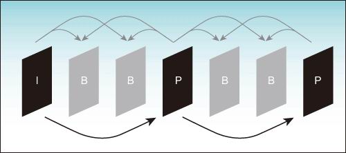 在视频编解码器中,单个帧可以采用三个模式中的一个进行编码 —— 即 i、p 或 b 帧模式(见图 3)。几个称为 intra (i) 的帧单独编码,无需参考任何其他帧(无运动补偿)。某些帧可以利用 mc 编码,以前一个帧为参考(前向预测)。这些帧称为预测帧 (p)。 b 帧或双向预测帧通过之前的帧以及当前帧的后续帧进行预测。b 帧的优势是能够匹配堵塞在采用前向预测的上一帧中的背景区域。双向预测通过平衡前向及后向预测可以降低噪声。在编码器中采用这种功能会要求更多处理量,因为必须同时针对前向及后向预测执行 me,而这会明显使运动估计计算需求加倍。为了保存两个参考帧,编码器与解码器都需要更多内存。b 帧工具需要更复杂的数据流,因为相对采集及显示顺序而言,帧不按顺序解码。这个特点会增加时延,因此不适合实时性较高的应用。b 帧不用于预测,因此可以针对某些应用进行取舍。例如,在低帧速应用中可以跳过它们而不会影响随后 i 与 p 帧的解码。