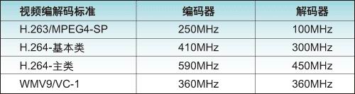 表解码器性能数据是针对最差情况下的比特流。解码器性能随所采用功能组合的变化而变化。上述例子中假定为高品质的编码。dm6446 上的 c64x+ 可达到 594mhz 的时钟频率。 请注意:所显示的编码频率数据是根据现有/计划实施而得出的典型测试数据。另外,编码器负载随目标应用不同而存在显著差异。压缩标准规定需要的语法与可用的工具,不过许多算法结果取决于具体实施情况。主要变量包括:比特率控制算法、单通道与多通道编码、i/b/p 帧比率、运动搜索范围、运动搜索算法、以及选用的个别工具与模式。这种灵活性允许我们在计算负载和改进质量之间做出不同取舍。显然所有编码器都可以采用或高或低的频率实现不同的视频质量水平。 13. 结论 越来越多的视频压缩标准可以针对具体最终应用提供越来越高的压缩效率和越来越丰富的工具。另外,向网络化连接发展的趋势意味着许多产品越来越需要支持多种标准。多种标准和专有算法的流行也使我们难以选择单个标准,尤其是在硬件决策经常超前于产品部署的情况下。不仅如此,每个视频编码算法都提供丰富的工具与功能选择,以平衡压缩效率的复杂性。工具和功能的选择是与特定应用和用例息息相关的重复过程。由于必须支持的编解码器数量的增多以及针对具体解决方案和应用而对编解码器进行优化的选择范围更为广泛,因此在数字视频系统中采用灵活的媒体处理器是大势所趋。dm6446 等数字媒体处理器可充分满足性能处理需求同时架构灵活,从而能够快速把新标准实施推向市场,其中包括:h.264、avs 与 wmv9。我们可以在标准定义阶段实施 |