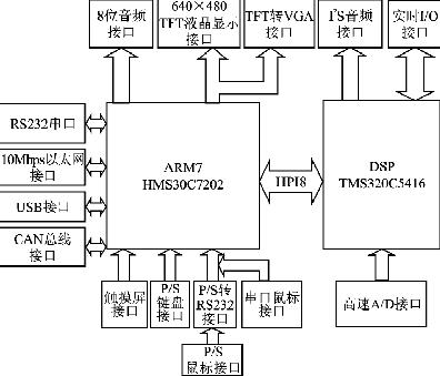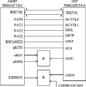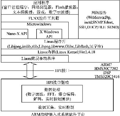 | 嵌入式系统的核心是嵌入式微处理器和嵌入式操作系统。早期的嵌入式系统硬件核心是各种类型的8位和16位单片机;而近年来32位处理器以其高性能、低价格,得到了广泛的应用。近年来,又出现了另一类数据密集处理型芯片dsp。dsp由于其特殊的结构、专门的硬件乘法器和特殊的指令,使其能快速地实现各种数字信号处理及满足各种高实时性要求。随着现代嵌入式系统的复杂度越来越高,操作系统已成为嵌入式系统不可缺少的部分。免费的嵌入式操作系统,如linux等,随着自身不断的改善,得到了飞速的发展。linux是一个免费的、强大的、可信赖的、具有可伸缩性与扩充性的操作系统。linux实现了许多现代化操作系统的理论,并且支持完整的硬件驱动程序、网络通信协议与多处理器的架构,其源码的公开更有利于操作系统嵌入式应用。 基于上述分析,笔者开发了基于arm和dsp芯片的双核嵌入式系统。系统充分利用了arm和dsp的各自特点,既可以使用arm和dsp芯片进行协同开发,也可以利用arm或dsp进行独立开发。操作系统选用了linux,以利于充分发挥系统的效能。 1 系统的总体设计 由于arm芯片的控制性能较强,在嵌入式系统中arm主要用于控制和少量的数据处理。这样,一方面要求cpu要低功耗和有足够的时钟频率来运行操作系统,以满足便携式的要求;另一方面也要求其有足够种类的接口,以利于性能的扩展。基于以上考虑,在开发平台中选用hy7202作为cpu。 dsp作为数据运算部分,可以充分发挥其对数字信号处理的独特优势。ti公司的c54xx系列16位定点dsp以其高性价比普遍应用于各类通信、便携式应用当中。考虑到对数字视频和数字图像等大数据吞吐量应用场合的处理要求,选用ti公司的tms320c5416芯片。其时钟频率最高可达到206 mhz,系统总体框图如图1所示。 ![]() 图1系统整体硬件结构框图 系统软件平台结构如图2所示,软件平台分arm部分和dsp部分,以及arm和dsp的接口软件设计部分。arm部分以hynix公司patch的arm linux version 2.4.18为操作系统,并在此基础之上移植linux标准库glibc、libjpg、libpng、imlib、libwww、libflash及汉字库。图形界面以microwindows 0.9及其控件库flnx提供嵌入式图形界面平台。系统平台具有强大的网络通信功能,通过平台webserver、ftp、telnet、inetd等网络工具和应用程序能方便地开发基于internet的网络终端、远程控制、远程数据采集、远程数据处理产品。在应用程序层上,系统平台集成窗口管理程序,全中文化网络浏览器(支持html、xml),flash播放器(支持flash4、flash5、flash6),文本编辑器,游戏等用于pda开发,机顶盒上网解决方案,以及可用于嵌入式数据采集、处理的虚拟示波器等。 ![]() 图2系统软件的总体结构 dsp部分通过提供完整的hpi驱动程序(dsp部分)及通信协议,通过增加相应数据处理程控制算法程序,利用hpi并行接口与主机arm通信进行数据交换,可用于各种实时处理,控制领域。 此外,dsp和arm可以各自作为独立的系统使用,它们均有完整的子系统软件。子系统之间联系的核心是dsp器件本身带有的hpi接口。 2 arm和dsp的通信接口设计 (1) dsp的hpi口介绍 hpi是tms320c54x等芯片提供的一种并行端口,专门用于dsp和外部主机并行通信。hpi接口有标准hpi接口和增强型hpi接口。对于c5416和c5420dsp器件,它们的主机接口为增强型主机接口。标准hpi接口是一个8位总线接口,通过2个8位字节组合在一起形成1个16字。增强型hpi接口分8位和16位两种。8位增强型主机接口和标准hpi接口操作时序一样,主要区别在于标准型只能访问2 kb专用ram,而增强型可以访问dsp的整个ram区。16位增强型hpi接口采用16位总线,只要一个主机操作就能完成访问操作。 (2) hpi硬件连线 hms30c7202与tms320c5416接口电路如图3所示。系统将hpi接口所有控制寄存器、地址寄存器、数据寄存器统一编址,映射到hms30c7202物理地址0x0c000000开始的i/o内存空间。 ![]() 图3dsp和主机双向通信 利用地址线ra\[3:0\]产生hpi访问所需的控制信号。a0与a1决定访问寄存器类型。a2决定访问的是第一个字节还是第二个字节:a2=0时,表示写入的数据为第一个字节;a2=1时,表示写入的数据为第二个字节。在hpi-8中所有地址线和控制线是在hds1和hds2的下降沿采样,而不是由hr/w决定,因此hr/w通过地址线a3表示当前操作是读还是写,而数据锁存信号由nrcs3和nrw0相与后共同产生。kscan[2]设置为hms30c7202的porta中断输入脚,dsp通过中断方式与linux底层hpi驱动程序通信。 3 arm和dsp的通信接口驱动程序设计 linux是unix操作系统的一种变种。在linux下编写驱动程序的原理和思想完全类似于其他的unix系统,但它和dos或window环境下的驱动程序有很大的区别。linux驱动程序可以编译进内核,也可以模块形式动态地加入和卸载。linux的这种特点可根据目标系统裁减内核,更适合于嵌入式系统。 (1) linux驱动程序基本原理 在linux中所有设备分为字符设备、块设备和网络设备三种,所有设备都看成普通文件,因此可以通过用操纵普通文件相同的系统调用来打开、关闭、读取和写入设备。系统中每个设备都用一种设备特殊文件来表示。 在linux中,设备驱动程序是一组相关函数的集合。它包含设备服务子程序和中断处理程序,每个设备服务子程序只处理一种设备或者紧密相关的设备。其目的就是从与设备无关的软件中接受抽象的命令并执行。当执行一条请求时,具体操作是根据控制器驱动程序提供的接口,