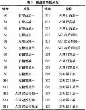 2.2 键盘/显示电路 Intel 8279有键盘处理和自动显示功能。在8279内部有2个RAM:一是键盘 FIFO堆栈/传感器RAM,具有自动消抖动和双键互锁功能;另一个是显示RAM,最多可为16个数码管提供RAM。 设计的系统需要用到6个数码管,因此需要扩展8279的扫描输出线。选用3~8译码器74LS138来扩展,同时设8279的工作方式为外部译码方式。由于8279的驱动能力较弱,采用74ls06驱动。数码管编号为D0~D5。D0和D5分别表示显示数据的最低位和最高位,其余类推。 系统中采用30个键盘,编号为S0~S29,代表的操作如表3所示。