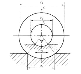 图1布氏硬度试验原理 HB =F / S ……………… (1-1) =F / πDh ……………… (1-2) = ……………… (1-3)式中:F —— 试验力,N; S —— 压痕表面积,mm; D —— 球压头直径,mm; h —— 压痕深度, mm; d —— 压痕直径,mm 1.2布氏 ………… (1-4) ![]() 图1-2布氏硬度压痕相似原理 这个规则来源于相似律。根据相似律,在图1-2中不同直径的球压头D1、D2在不同的试验力F1、F2作用下压入试样表面,压痕直径d1、d2是不同的,但是只要压入角 1、 2相同,压痕就具有相似性。这时试验力和压头球直径的平方之比就是一个常数。在这种条件下,采用不同的试验力和不同直径的球压头,在同一试样上测得的硬度值是相同的,在不同的试样上测得的硬度值是可以相互比较的。试验力与压头球直径平方之比在采用公斤力的旧标准中表示为F/D2,在采用牛顿力的新标准中表示为0.102 F/D2。1.4.2规则二,试验后要使压痕直径处于以下范围: 0.24D < d < 0.6D ………… (1-5) 否则试验结果是无效的,应选择合适的试验力重新试验。人们的大量试验表明,当压头直径在0.24D~0.6D之间时,测得的硬度值与试验力大小无关。布氏硬度试验可选择的试验力从3000kg到1kg大约有20个级别。布氏硬度试验可选择的压头直径为 10mm、 5mm、 2.5mm、 1mm共4种。布氏硬度试验可选择的0.102F/D2值为30、15、10、5、2.5、1共6种。标准GB/T231.1—2002中规定的试验条件如表1-1所示。 表1-1布氏硬度试验条件
