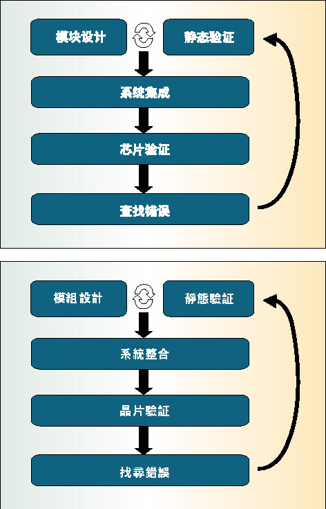 Rise公司总裁David Lin说:“PC并没有消亡,只是深深根植到信息电器之中而已。”选择x86架构是因为非x86架构的软件接口复杂、速度不够高。为了满足信息电器对功耗的要求,Rise采用了精简指令集、利用先进IC制造工艺和优化内部存储器设计等手段。 同时,通过采用三个整数和三个MMX超级标量结构、全管线FPU和高级片上电源管理系统,Rise CPU核具备很强的Java编程能力、多媒体和因特网浏览能力、高效的MPEG4视频数据流处理能力以及大幅提高系统可靠性的热管理能力。 VLIW(超长指令字)方法与超级标量方法相比数据处理吞吐量更大,因而在视频数据流处理方面拥有许多优势。Trimedia公司展现了Trimedia架购,它采用新的VLIW方法。 如图3所示Trimedia VLIW处理的概念图。在指令系统中,它消除了传统的VLIW架构中许多空(nop)操作软件指令;在硬件上,将ALU、除法器、乘法器和支持架构进行了精简和重新组合。 采用这种架构的CPU,能够完成繁重的控制和数字图像信号处理任务,灵活性大,多媒体系统设计的成本低。其目标应用是与图像处理有关的产品,如视频回放、数字相册、视频电子邮件、可视电话、互动电视等等。VLIW处理器核是构成多媒体SoC的核心,鉴于市场前景广阔,该公司只出售配备VLIW核的“Trimedia VLIW媒体处理器核”。 在实际应用中,SoC的重要特点是包含许多功能模块,其系统规模大、结构复杂、内部各功能模块之间需要通过总线连接,这对EDA和SoC设计方法提出了挑战。 SoC引发EDA验证和设计方法的深刻变化 业界认为,集成电路设计的复杂度遵循莫尔定律以每18-24个月的速度翻番,而验证的复杂性却以两倍的速度增加,完成验证占用的时间每9-12个月翻番。验证过程由于不能满足产品面市时间的需要。其延迟造成的影响引出了“验证断层”问题。随着SoC应用的普及,验证占据设计总时间的比重已经上升到75%以上,验证困难已经越来越尖锐地摆在SoC设计工作的首位。 目前,基于仿真的验证需要数百万的测试向量来验证一个行为,因而已经远远不能满足现实的设计需要,主要表现在仿真一般都处于系统集成完成之后,因而设计返工次数多,项目进度不能保证,验证的可靠性降低,更为严重是人们难以通过仿真方法突破现有的验证断层。 Averant公司推出基于静态功能验证SFV(static functional verification)方法的验证工具Solidify,SFV方法采用类似于数学上的穷举法来揭示设计中所有的行为特性,从而验证各种模块中可预测或不可预测的功能。如图4(a)所示为Solidify HDL验证工具的流程。在模块设计完成的同时,利用SFV方法进行代码检查,从而改进模块设计的质量,进而将问题消除在系统集成之前。图4(b)为发现故障和故障定位所花费时间的比较。SFV在模块级进行HDL代码检查,从而极大地缩短了故障查找和定位的时间。 遗憾的是这种工具只具备了Averant开发的VHDL和Verilog编译器,还需要与其他公司的设计输入、项目管理、波形分析和Debug工具结合起来,才能构成完整的验证系统。此外,待验证的模块门数目前只达到了100K,因而仅适合门规模适中的验证需要。 Novas公司从团队设计角度提出了解决验证问题的一体化方案。他们认为:1. 验证过程首先要排除人为的干预;2. 并行计算和硬件加速方法并不能解决SoC设计和IP复用过程中多功能、多设计人员、复杂验证环境所带来的挑战;3. 新的Debug系统具备的特性应包括:加速设计注视的理解;自动定位并隔离故障;俘获和记忆所有故障的数据,分享对故障注视的理解以及集成所有Debug结果的能力。 如图5所示为Debussy故障诊断工具的原理图。该系统直接从原始的Verilog和VHDL源代码对设计进行编译,编译内容包括测试基准、行为代码、可综合逻辑和门/开关级网表。在编译的过程中,系统检查基本句法错误,采用综合技术来识别电路的单元,并将详细的设计信息存储在知识库(KDB)中。利用KDB,系统可以校正设计的仿真和验证结果并生成电路图。 这样的系统为设计团队的工作提供了极大方便,其配备的nTrace、nSchema、nState、nWave、nCompare和nLint等模块系统,可以根据 |