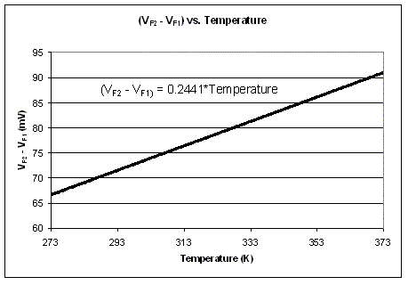 随着处理器速度提高并消耗更多功耗,热管理成为所有使用微控制器的器件中的日益重要的问题。由于热管理变得日益重要,所使用的技术变得更复杂和有条件限制。然而,归其根本,热管理归结为测量温度以及驱动如风扇、液体冷却系统和时钟节流(clock throttling)等冷却机制。 温度测量得越准确,就越能驱动精细调节冷却机制。这有益于省电(对于驱动冷却机制)、改善性能并提供更清洁的声学环境。 根据系统要求,可以有多种在集成系统中进行温度测量的方法。这些方法的实例包括热偶、热敏电阻和最常用的解决方案热二极管。热偶是已知热性能的金属回路。电流通过回路,测量电压从而测量回路的阻抗。结果是,随着温度升高阻抗发生变化。 与电偶类似的一种器件是热敏电阻。这种器件被构造成其阻抗直接与温度成线性。为了使用热敏电阻准确测量温度,必须知道流入器件的电流,器件上测量的电压必须非常准确。 使用热偶和热敏电阻电路测量温度可行也不昂贵。在许多应用中,它们就足够了。然而,它们并不容易适用于delta测量,它们可测量的精度受到限制。 稍微复杂一些但十分常见的测量温度的方法是利用二极管相对于温度的正向电压(VF)特性。在给定电流下,二极管的正向电压由方程1(见附录)给出。 直接测量VF的一个问题在于IS条件高度依赖于温度,它意味着方程式VF(T)不存在封闭解,变得非常难以预测。此外,很难产生不随电源、处理变化和温度而发生变化的精确的电流源。 由于对数特性,如果VF在两个独立温度下测量,两次测量的差将根据温度线性变化,而不存在条件。此外,线性条件是电流比率的函数,它相当平坦且不依赖于反过来影响单电流源的工作条件。方程式2-4(见附录)说明了delta VF如何以代表电压的方程式4而确定,在进行温度测量时常常对电压进行估计。 图1显示了温度和Delta VF之间的理想关系。在这一曲线中,η系数精实地等于1.000,而IF2 / IF1之比等于是17。很容易说明,该比率常被用于温度监测以达到良好的匹配特性。