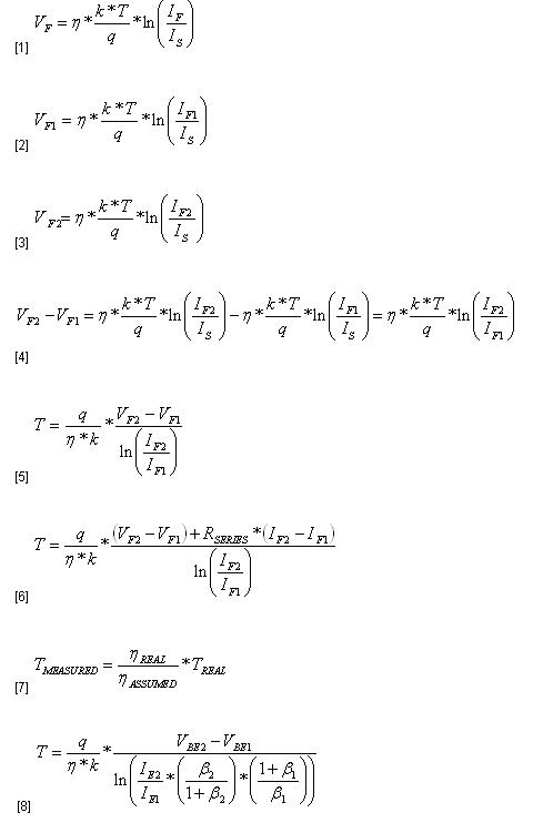 由于每种误差源是独立的,每种都必须单独解决以纠正所测量的温度。如我们看到的,即使是很小的失配或误差,都能引致所测温度中很大的误差。这一误差要求热测量系统必须具有更大的误差容许量(margin-for-error),它反过来不需要最佳的冷却解决方案。降低或消除温度测量中的主要误差源可以提高热管理系统的节电效率。 附录/方程式 其中: VF = 二极管正向电压 VBE = 晶体管基极-发射极电压 IF = 流入二极管的电流 IE = 流入晶体管发射极的电流 IS = 二极管或晶体管的饱和电流 η = 二极管的理想因子(额定值1.00) k = Boltzmann常数 = 1.381e-23 q = 电子电荷 = 1.602e-19 T = Kelvin温度 =℃温度 + 273.15 |