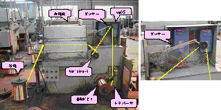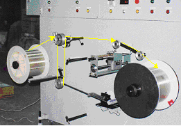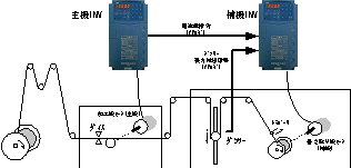 | 1. 前言 随着电力电子器件和控制技术的不断应用,通用变频器作为以实现产业机械为主的自动化、省力化、节能化的交流调速装置而得到了迅猛发展。由于对通用变频器技术进步的期待日益高涨,而使其的应用不仅在工业生产方面,而且在健康/医疗设备、娱乐装置、环境/生活方面的装置及家用领域的使用也得以不断扩大。 在新市场应用的不断扩大之中,原先的各种变频器的应用方面的技术进步也同样突飞猛进,系统装置本身及其运用形态也更趋向自动化。为此用户对变频器的要求也必然随着各用途市场的动向而变化。对于一般的通用变频器在某些应用上还存在着功能不足的情况,为填补此差距,有不少用户不得不利用程序控制等系统方面的措施来弥补。这是由于变频器厂家对产品的通用性能方面过于重視所至,而且各家提供同样类似的功能也使变频器趋向于便于统一使用的方向。但在近来各变频器应用系统显现出特殊化应用的趋势,若还是单纯地只意识到其通用性,则难以对广大特定用户提供方便使用的变频器产品。为此三垦把能随时提供尽如人意予以对应的变频器作为这次开发的设计指导思想,从而把SAMCO-vm05系列予以了产品化。 SAMCO-vm05系列、是把SAMCO-I系列的三垦独特的V/f控制和无速度传感器矢量控制的感应电机高性能驱动的计算作为基础,而制作了具有各种用途特化功能的产品。 本文作重介绍SAMCO-vm05变频器在多种卷绕设备的卷绕控制中的应用。 2. 卷绕装置的专用功能 2.1 卷绕控制功能 作为丝线、布匹、紙张之类的卷绕装置而应用了形形色色的方式,但在本产品所配备的卷绕控制功能,将不再需PLC及昂贵的矢量变频器或是转矩电机等,就能构筑成廉价的卷绕系统。 其基本构成情况如图1的卷绕系统所示那样,把多台变频器直接地互相连接,把张力架的張力予以反馈并设定好卷绕功能,即能实现各种丰富多彩的卷绕控制。 ![]() 图1 卷绕系统的构成 2.2 应用于拔丝机 用在对銅線等予以拔丝加工(伸線機)时所用的卷绕装置时、其首要条件是要使主机側的线速度同卷绕側的线速度予以联动。然而、即使是以恒速进行联动运转,但是随着卷绕时间的推移、就会因卷绕側卷粗而发生速度误差、最終则可能导致断线现象。 对应拔丝机的卷绕控制、是随着卷绕时间的经过、而把卷绕側电机的转速予以变化、并在卷绕变粗或抑制卷绕松卷的同时进行速度控制的卷绕控制。 如图1所示、变频器基本上是使用于加工机(主机)及卷绕机用的2台,其以控制线互相连接、并以加工机(主机)的动作而使卷绕机予以联动。在分别设定了卷绕开始的频率、卷绕终了的频率、以及卷绕时间的参数、并输入了张力架(张力吸収装置)位置检测信号之后,即能在指定的时间中、一直到指定的频率为止对输出频率予以控制来进行卷绕。 中途的张力架动作的补偿、能以图2所示的独特的张力架补偿功能在最小变动范围内与以控制。此外、在变频器中是按三垦独特的卷绕曲线进行计算的、并随着卷绕时间的经过、对卷绕粗度予以补偿。其情况如图3所示。 张力架补偿是随张力架位置而进行的可变增益控制,可对比较缓慢的巻粗现象所引起的变化及加减速时的急剧的变化都予以补偿。此外,卷绕计算曲线具有4套设定、并能以外部输入信号来进行选择。由此、即使卷绕时间或绕线筒直径发生很大的变化、也能以1条曲线切换信号简便地改变系统。 图2 卷绕控制过程图 screen.width-333)this.width=screen.width-333 border=0> 图3 卷绕特性 ![]() 图4 拔丝机装置 2.3 应用于送线机 在形形色色的卷绕系统的构成中、有时还需要同卷绕側进行相反动作的送线側的装置(送线机)。本控制法、是此类装置所最为合适的送线机对应功能。 图5是生产扁形电缆为实例的8条独立的送线机构成图。 送线机是同卷绕側的卷绕速度予以联动来作为其基本动作的。但在不能得到卷绕装置而来的速度情报时、联动运转就会成为非常困难的动作。即使是在这种情况下、本控制也能同卷绕側的速度无关来进行供线。 卷绕側的速度变化、全反映在张力架的动作上、检测此张力架的动作并进行原位控制、为事先预防送线时的过张力及卷绕的松卷现象、来改变旋转方向和转矩。由此动作、即能进行不受卷绕側速度影响的单独的送线机控制。此外、考虑到断线时的紧急停机、在超越了断线判断电平时、即使其进行DC制动(直流制动)停止动作。此外、在进行卷线的准备作业时、若发生过多的送线时、即会在反转方向进行回卷控制。 2.4 应用于卷绕机 从送线筒把线材送到绕线筒的卷绕机方面、会因其线的材质而要求某种恒定的張力和某种恒定的线速度。图6所示的光纤的卷绕装置中、由于使用的是非常容易断线的线材、所以应以数m~数十m/分的低速来进行恒張力、恒线速度的卷绕。 ![]() 为实现该性能的控制构成图如图7所示。 其特征在于驱动送线部绕线筒的变频器和驱动卷绕部分绕线筒的变频器是互相独立地进行控制的。卷绕側的变频器、是以装置滑車上所设置的PG速度传感器的速度反馈脉冲为依据来进行线速度恒定控制的。此外,送线側的变频器是使用着专用的卷绕功能的、并以张力架的位置检测反馈信号为基准来进行張力的恒定控制的。 也就是说,不使用相互的比率联动信号等、而是以卷绕側变频器的线速