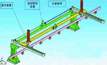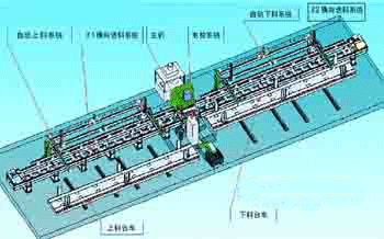 | 本文着重介绍汽车平板纵梁和“U”形纵梁腹底冲孔生产线的结构、性能、特点。该生产线可实现平板纵梁的冲孔,也可通过调整部分附件实现对“U”形纵梁腹底的冲孔,能够做到一机多用,具有较强的柔性,极大的满足用户个性化的需求。 传统的纵梁冲孔加工工艺有两种:一种是使用复合模具一次成形,适合大批量生产;另一种是使用钻床通过钻模板进行钻削加工,适合小批量加工。随着我国汽车工业的飞速发展,客户个性化需求越来越多,各种变形车架层出不穷,传统的加工制造方法已不能满足上述要求。针对这一现状,我公司通过对一汽、二汽、陕汽等汽车车架厂调研,开发出了汽车纵梁冲孔生产线,其最大特色就是能够柔性地对汽车大梁板进行冲孔加工,既可以加工平板纵梁又可以通过调整部分附件扩展成“U”形纵梁腹底冲孔生产线。 一、结构组成 该生产线由上料台车、自动上料系统、X1 横向送料系统、主机、自动下料系统、X2 横向送料系统、电气控制部分、下料台车等部分组成。汽车梁板的加工过程如下:首先由人工通过行车将被加工的梁板按照要求放置在上料台车上,台车按照控制系统发出的指令,自动运行至上料系统吸盘的下方,然后自动上料系统将板料吸起送至夹钳上方,并下降至支撑料辊上,通过对中装置将板料对中,再由夹钳将板料夹紧,自动找原点后,按照程序进行冲孔。当完成所有冲孔工作后,由下料系统将板料通过吸盘吸起,送至下料台车上,当台车上的板料满了以后,台车自动将板料移出线外,方便转序。生产线控制方式有两种:手动控制方式和自动控制方式。在手动控制方式下,操作者通过操作面板上的按键以点动的方式控制各部分的动作;在自动方式下,生产线将按照编好的加工程序自动完成各种加工动作。 (一)上料台车 上料台车用于装运需加工的板料,台车长10m,宽1m,最大装载质量10 t。台车可沿Y 向开出1.5m,实现机外吊运上料。平板纵梁由天车吊运至台车上,沿台车上X、Y 端靠山对齐,最大装料高度630mm。对于U 形纵梁,台车长12m,宽1.3m,最大装载质量20t。台车可沿Y 向开出1.5m,实现机外吊运上料。当冲压U 型纵梁时,用户需事先把U 型梁顺序码垛并叠放整齐在一个料槽内,U 型开口向下。最大装料高度为630mm,顺序排放,保证最大槽梁可按6 层3列排放,如果槽梁宽度和高度尺寸较小,可排放更多数量。U 型纵梁的X 向端头需与台车靠近主机段边沿对齐,U 型梁的层与层之间需用钢板隔开。 (二)自动上料系统 自动上料系统由可上下移动的挂架、前后移动的横梁、电磁铁及相应开关到位检测装置组成。吸持上料采用电永磁磁铁吸持梁板,断电吸附,确保安全。上下采用减速箱带动左右两个小齿轮与齿条啮合,从而带动一根挂着8 组电永磁磁铁的挂架上下移动。当上料台车到达指定区域时,感应开关发讯,电磁铁挂架下行;磁铁触到梁板后,感应开关发讯,下行停止;磁铁吸料,挂架上行到指定位置停止上行。挂架安装于横梁上,横梁向横向送料系统方向移动,移动到横向送料系统的正上方停止。挂架下行,板料放置在横向送料系统的滚轮上,磁铁消磁,放下板料后,挂架回到初始位置,等待下一个工作循环。该吸持上料系统的电磁铁采用电永磁方式,当磁铁产生磁性后,在不给出消磁信号前,磁铁始终带磁。所以当吸持上料系统在运行过程中碰到突然断电这种意外状况时,磁铁也能吊住纵梁,杜绝纵梁掉下造成设备或人员损伤。 (三)横向送料系统 横向送料系统由下列部件组成:X1 横向送料装置、液压夹钳、对中装置、销定位装置、辅助夹钳、托料辊、X2 横向送料装置。 ![]() 横向送料系统由左、右两部分组成,左侧(X1)横向送料装置安置一只送料夹钳,从板料的左端夹住板料,沿X 向向前推送梁板。横梁中间放置两组对中机构,并间隔放置一系列支撑用托料辊。加工U 型梁时,料辊支撑住梁底。主机右边的横向送料系统(X2)上面也有一只夹钳,正常停留在靠近主机一侧,当对面的板料穿过主机后到达这只夹钳位置时,两只夹钳同时夹住板料同步移动。对中机构有两组,其作用是板料定位,放置在上料侧的横向送料装置中间。靠近主机的对中装置,正常位置固定;远离主机的对中机构随板梁长度不同,可手动调整位置,其调整范围可达9m。 (四)冲孔主机 冲孔主机由压料导向装置、冲孔机构、Y 向传动机构、模具选择机构、废料输出机构组成。冲孔主机采用液压主传动。由主油缸带动主滑块及安装在滑块上的上模向下运动实现冲压动作。在主机两侧安装有两组压料导向装置,用以减轻纵梁的振动,使冲压顺利进行。冲压模具为沿X 向直线排布,中间布置5 副大模具,两边模具分两排各放置10 副。冲压时模具的选择通过气缸推动滑块来完成。 冲压采用随动压料冲裁方式,冲孔前先由压边缸动作将压料架压紧在纵梁腹底后,再由主油缸动作完成冲孔,当冲头回程时强制将冲模从板料中完全退出后,压料架在弹簧作用下才复位,接着下一个送进动作才开始。由于采用液压压料冲孔工艺,压料架的压力不随时间和冲孔行程而变化,可杜绝带料现象产生。压料力由两只液压缸提供。 Y向传动机构使用重载导轨导向,由一根丝杠驱动。压料导向辊在板料进入主机后,下托料辊由弹簧支撑, 冲出的废料由链式废料输送装置送出至废料车中。 (五)数控系统 数控系统采用FANUC 公司的0i-PC 系统控
