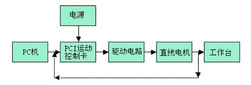 图2 直线电机位置控制器的原理框图 这是一个双闭环系统,内环是速度环,外环是位置环。采用高精度光栅尺作为位置检测元件。定位精度取决于光栅的分辨率,系统的机械误差可以由反馈消除,获得较高的精度[4>。 采用直线电机的开放式数控系统 采用PC机与开放式可编程运功控制器构成数控系统,这种系统以通用微机及Windows为平台,以PC机上的标准插件形式的运动控制器为控制核心,实现了数控系统的开放。基于直线电机的开放式数控系统的总体设计方案如图3所示。