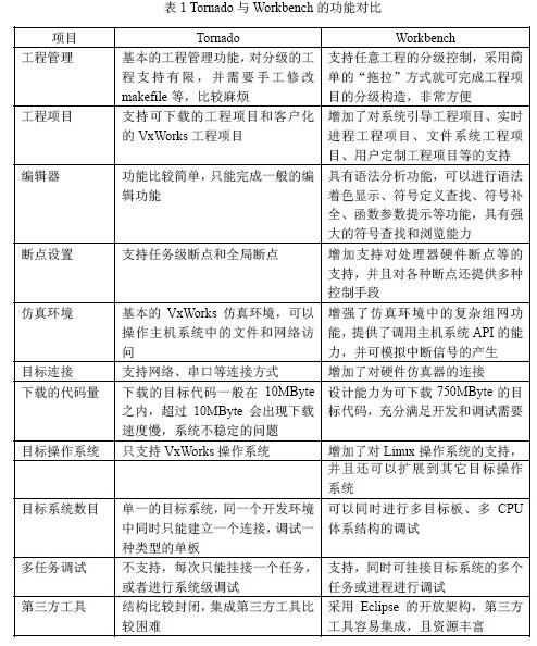 | ado的功能对比 Workbench平台相对于Tornado平台来说,各项功能均有所增强,也有不少新加入的功能,主要的功能对比如下表所列: 表1 Tornado与Workbench的功能对比