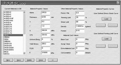 这时需要选择正确的材料,Fastform的材料库是开放的,可以任意添加、修改及删除。所有参数经过核对,确保选择了正确的材料,如图2所示。