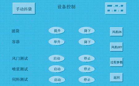 图5 设备控制画面 7 结束语 由于S7-200系列PLC具有体积小、系统集成度高(电源、主机、机架、开关量输入输出等功能集成一体)、配置灵活、接线简单、安装方便、抗干扰性强等特点,同时与同性能的产品相比性价比高,很好的满足了此次系统改造经济上技术上的要求。新系统人机界面友好(全中文界面),操作简单快捷,运行可靠稳定,受到广大用户的好评。