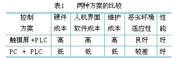 图1 小丸包衣制粒机系统组成 3 系统主要控制要求 小丸包衣制粒机操作的基本控制要求包括五个方面。 (1) 产品温度控制 通过控制进风温度来控制产品温度。进风温度控制精度为±3℃,产品温度控制精度为±2℃。 (2) 进风风量的控制 控制精度为±40m3/h。 (3) 雾化压力的控制 即喷液装置喷射压力的控制,控制精度为±0.1bar。 (4) 密封压力的控制 产品容器必须与扩展仓密封,形成一个密闭的流化床反应器。采用油压装置进行密封,密封压力在35-70bar之间。 (5) 滤袋的抖动控制 抖动有单滤袋抖动和双滤袋抖动,有手动抖袋和自动抖袋。 4 控制方案的选择 4.1 两种不同方案的比较 小丸包衣制粒机的改进有两种方案可供选择,见表1:
