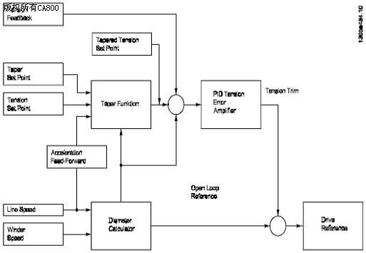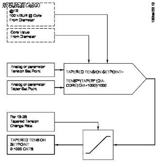 张力给定处理亦即锥度控制功能,其目的在于保证在收卷时,当直径变化时卷内外的张力一致,或卷内外松紧一致,防止在储存时卷变形。张力给定与卷径的关系不是线性的而是双曲线的。