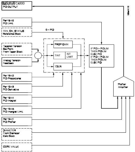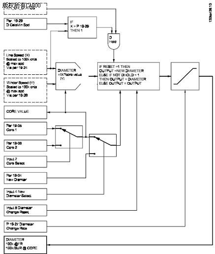 从上与可以看出,PID的实际给定值是在考虑了锥度功能之后的给定值,同时par-194是一个非常重要的参数,对张力系统的影响非常大。 3; 直径计算功能: