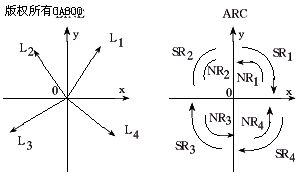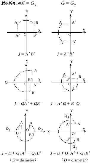 图2 加工指令示意图(左为直线,右为圆弧) 下面是一段线的实体组码: