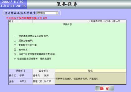 图3 具有相应权限的操作人员可以根据实际填写该保养单并确认该保养单,该保养单会保存起来,并供以后查询。 |