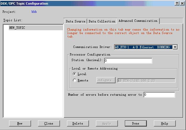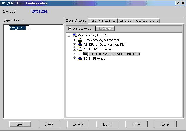| 1、授权 AB javascript:if(this.width>500)this.width=500" border=0 dypop="按此在新窗口浏览图片">点击运行会弹出如下对话框: javascript:if(this.width>500)this.width=500" border=0>现在将授权软盘插入到软驱,点击“OK”按钮将授权文件拷贝到电脑硬盘上,如果授权成功,会弹出如下对话框,以确认RSLINX.EXE应用软件已经授权成功。 javascript:if(this.width>500)this.width=500" border=0>2、RSLinx.EXE软件的设置。 在设置好RSLinx.exe应用软件的授权后,运行RSLogix 500软件,设置好AB javascript:if(this.width>500)this.width=500" border=0>在列表里选中要通讯的 javascript:if(this.width>500)this.width=500" border=0>3、OPC服务器的配置 在确认RSLinx软件已经能够正确和 javascript:if(this.width>500)this.width=500" border=0>打开一个OPC工程后,就可以正式开始配置OPC 服务器了,通过选取DDE/OPC-Topic configuration菜单项,建立一个OPC服务主题。在弹出的如下窗体中,选取要配置成OPC服务器的对应选项,点击“New”按钮,编辑一个OPC服务器主题名称(可取任意名称)。 javascript:if(this.width>500)this.width=500" border=0 dypop="按此在新窗口浏览图片">切换到“Data Collection”页,通过Processer Type下拉框,选择正确的 javascript:if(this.width>500)this.width=500" border=0 dypop="按此在新窗口浏览图片">切换到“Advanced Communication”页,通过Comunication Driver下拉框,选择和 javascript:if(this.width>500)this.width=500" border=0>设置好OPC服务器后,点击“Done”按钮,确认关闭窗口。 配置好一个服务器后,在如下图的列表中选定刚才配置过的 javascript:if(this.width>500)this.width=500" border=0>目前为止OPC Server已经正确配置。可以通过vb客户端的OPC设备构件,进行数据的连接。 VB客户端连接RSLinx 首先我们为了调试方便,先编写一个 javascript:if(this.width>500)this.width=500" border=0>将程序下载进 javascript:if(this.width>500)this.width=500" border=0>打开后程序运行如下: 点击List OPC Server列出所有OPC Server并选择RSLinx OPC Server,点击Connect连接RSLinx服务器: 在Add Group to OPC Server框中加入Group Name组名 1、更新数据速率等选项后,点击Add Group,如下图 这时就可以添加标签了,标签对应着OPC Server的路径,路径可以由RSLinx中的,copy DDE/OPC LINK中看到。添加好后如下图: 此主题相关图片如下,点击图片看大图: javascript:if(this.width>500)this.width=500" border=0>这样就可以通过vb客户端软件上的 Current value读到这个变量的值,通过Write value来写这个变量。 |