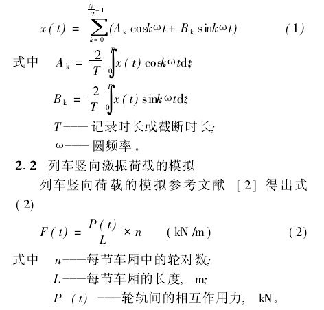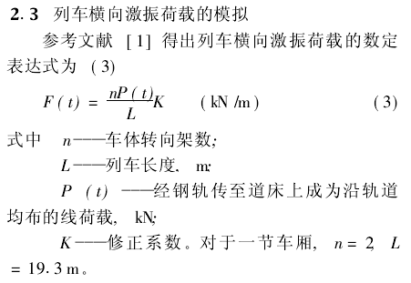 | 1 引言 随着城市人口的增加,交通问题日益突出,地下铁道以其运量大、速度快、安全可靠、运行准时等特点,成为解决城市交通的重要手段。另一方面,地铁运行时产生的振动也是世界各国普遍存在而需要解决的问题。列车振动对地基以及周围环境都会产生重要影响,所以研究地铁列车荷载的确定方法非常重要。 目前,国内尚无列车振动荷载的数值计算方法,现有方法大都是基于现场测试,并进行频谱分析,在此基础上推导列车振动荷载的方法主要有以下三种: (1)先进行现场测试分析,然后根据列车荷载形式用傅立叶变换进行离散,再通过列车车辆模拟轮系和轮轨相互作用简化模型,应用达朗贝尔原理求解出列车振动荷载的数定表达式; (2)根据经验和实验分析用人工激励函数来模拟列车振动荷载; (3)根据列车—轨道—隧道结构系统,进行有限元分析计算得出列车振动荷载。 2 列车振动荷载数定分析 2.1 现场测试及分析 进行现场测试时在已通行有代表性的高速铁路线上或模拟现场进行测试,测试中在轨底和轨腰处安置加速度计,振动信号经放大由磁带记录仪记录下来,然后在试验室回放,直接输入到信号处理仪进行处理,将模拟信号变换为数字信号,可绘出轨道纵、横两个方向振动加速度波形及其功率谱。 由于列车振动荷载受载重、车速、钢轨踏面及其它细节情况的影响,所以从总体看由列车荷载所引起的钢轨、衬砌及周围介质的振动属于随机振动。 由现场实验得到的轨道加速度波形,其表达式是未知的,一般认为是一个具有零均值的平稳各态历经的高斯过程。因而可以将其分解为一系列不同频率的谐波,即轨道的加速度波形可以分解成许多不同频率的正弦波和余弦波之和。 文献[1]得出钢轨振动加速度波形的数定表达式为 ![]() ![]() 3 人工数定激励力 地铁列车产生的振动或多或少是随机性的。但是英国铁路技术中心多年来的大量研究和实验工作,其所得结论和数据使得用数定法来模拟列车荷载成为可能。 实验表明,产生竖向轮—轨力的主要原因是: (1)轨道接头和焊接使钢轨走行面发生局部不平顺; (2)轨枕的间隔排列或轨面波纹导致周期性的不平顺; (3)纵断面内随机变化; (4)轮周面局部擦伤和偏心轮重; (5)轨枕支承面刚实程度不同所引起的随机变化。 实验还表明,竖向轮—轨力主要出现在三个频率范围内: (1)低频范围(0.5~5.0Hz),几乎完全由于车体对悬吊部分的相对运动所产生; (2)中频范围(30.0~60.0Hz),由于簧下轮组质量对于钢轨的回弹作用而产生; (3)高频范围(200.0~400.0Hz),由于钢轨的运动受到轮轨接触面的抵抗所产生。 根据现有的结果和数据,可以用一个激励力函数来模拟列车动荷载,其中包括静荷载和由一系列正弦函数迭加而成的动荷载[3]: F(t)=A0+A1sinω1t+A2sinω2t+A3sinω3t (4) 式中 A0——轮静荷载; A1、A2、A3———与钢轨振动圆频率对应的振动荷载峰值; t———荷载作用时间。 当列车运行速度为已知时,量测出钢轨的基本振动波长L及与之对应的振幅αi,即可算出相应的圆频率ωi。令列车簧下质量为m,则相应振动荷载幅值可按式(5)计算。 Ai=m·αi·ω2i (5) 4 列车—轨道系统模型 列车—轨道系统动力分析模型是由车辆模型轨道模型按照一定假定的轮轨运动关系联系起来组成的系统。列车运行产生的振动经过道床,会产生一定的衰减。但大多数文献进行有限元分析时将轨底的荷载直接作为激励作用在地层上,没有考虑道床的衰减作用。根据整体式道床(地铁隧道一般都采用整体式道床)的振动衰减规律,可以得到地铁隧道底部的加速度时程图。通过列车—轨道系统动力分析模型在计算机上进行模拟分析,可以得到作用于道床底部的列车荷载激励力曲线及其功率谱,作为动力荷载作用在隧道底部上。 4.1 车辆模型 车辆—轨道耦合动力模型由车辆模型、轨道模型和轮轨间的耦合关系组成。其中,车辆模型由一个6节编组的车辆系组成,每一节是一多自由度的振动系统,包括车体、转向架、轮对、弹簧和阻尼器。车辆模型是在如下假定的基础之上建立起来的。 (1)每节车辆的车体、转向架和轮对均视为刚体,不计它们在振动中的弹性变形。 (2)车辆悬挂系统的一系和二系阻尼均简化为粘滞阻尼器。对于非粘滞阻尼的减振器,可换算成由当量阻尼比确定的粘滞阻尼计算。 (3)横向运动(横摆、摇头、侧滚)与竖向运动(浮动、点头)互不耦合。因此,可单独分析竖向振动。 (4)不考虑车体、转向架和轮对沿车辆纵轴方向的振动。这样,每节车体和每个转向架各有两个自由度(沉浮和点头),分别由通过车体重心的坐标Zc、Φc和通过转向架重心的坐标ZT、Φ T表示;每个轮对考虑沉浮一个自由度Zw。对每个四轴客车,总计算自由度为10。 4.2 轨道模型 轨道模型包括轨道以及轨下的橡胶垫层和扣件。有如下假定。 (1)轨道为一置于一系列弹簧(橡胶垫层、扣件)之上的无限长梁,采用有限元法分析。其质量和刚度系数形成运动方程中的刚度矩阵,而阻尼矩阵假设为Rayleigh阻尼[C]=α[M]+β[K]。 (2)橡胶垫层和扣件简化为一组质量—弹簧—阻尼器系统。 根据上述假定,每个轨道节点有两个自由度(竖向、转动),而每个弹性节点有一个自由度(竖向)。所以整个轨道模型的自由度为2N+n,其中N为轨道节点数,n为弹性支承点数。 。 4.3 列车荷载 根据上述的车辆—轨道耦合动力学模型,在计算机上进行模拟,假