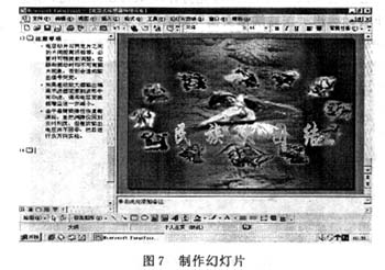 (2)选中“空演示文稿”,确定后会弹出另一个对话框,选择所需要的版式,在这里选择空白版式,作为演示文稿封面。然后在该版式下方工作栏处双击“默认设计模板”,选择适合的模板,在以后的幻灯片中都将默认此模板不变,这里选择了自带有上下翻页按钮的模板。在工作栏中选“插入”、“来自文件”存储的扫描图片,然后调整大小。点击艺术字按钮“A”,添加所需文字,并对文字字体、颜色、形态、大小等进行调整。截取CD乐曲片段作为背景音乐,具体操作从工作栏中选“插入”、“影片和声音”、“文件中的声音”,选出优美的旋律,再选工作栏中“放映幻灯片”、“自定义动画”设置图片、声音文件和文字的出现顺序、方式、时间等效果,如图6所示。