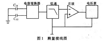 低频振荡器输出接“激振I”一端,“激振I”另一端接地。移开测微头,调节频率和振幅,使差放输出波形较大但不失真,用示波器观察波形。 注意: (1)电容动片与两定片之间的片间距离须相等,必要时可稍微调整。位移和振动时均不可有擦片现象,否则会造成输出信号突变。 (2)如果差动放大器输出端用示波器观察到波形中有杂波,请将电容变换器增益进一步减小。 (3)由于悬臂梁弹性恢复滞后,虽然测微仪回到开始刻度,但差放输出电压并不回0,此时可反向旋动测微仪,使输出电压过零后再回到初始位置,反复几次,差放电压即到0,然后进行负方向实验。 测量结果如图2所示。